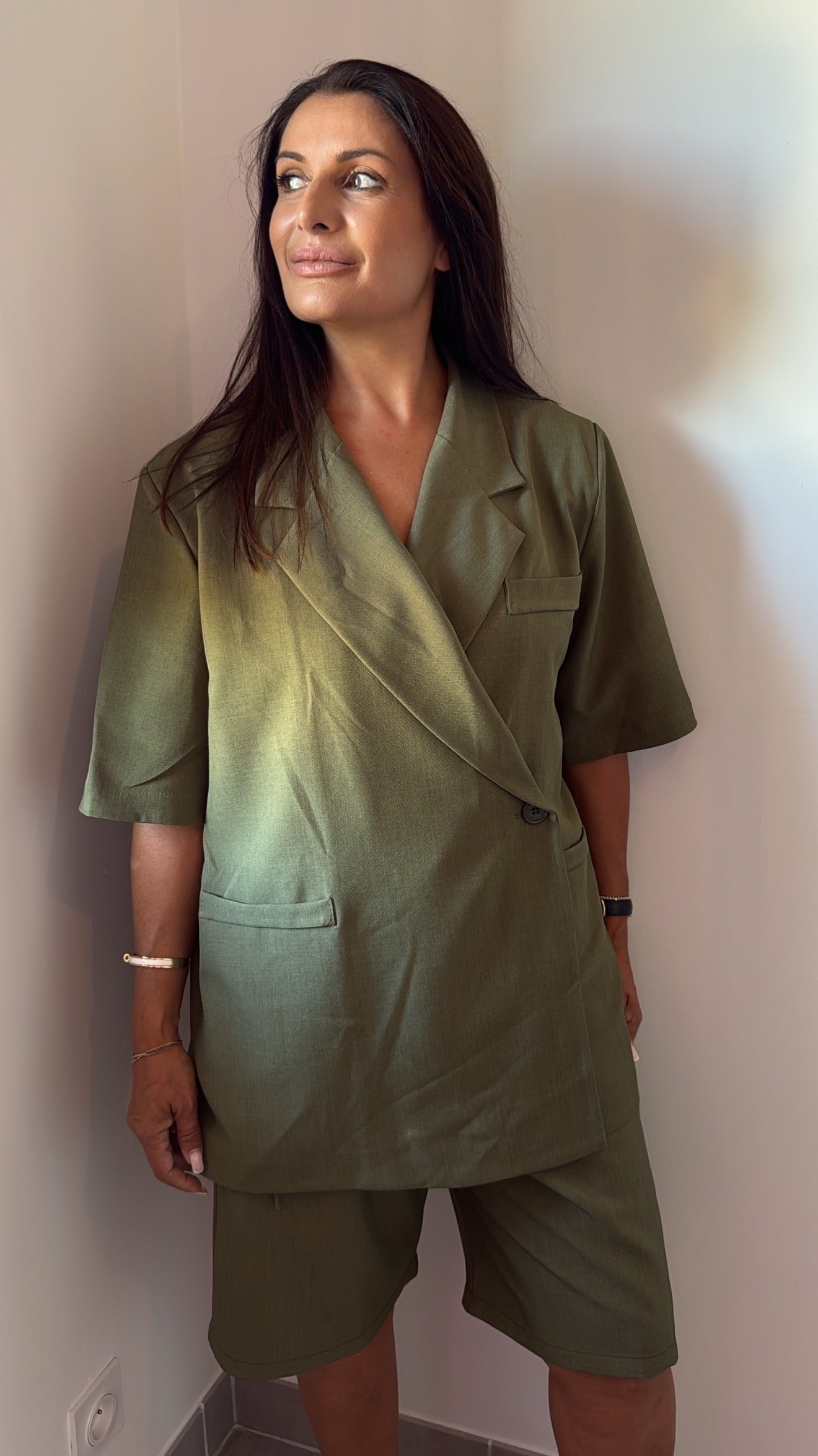 Ensemble tailleur short & blazer kaki – Tendance et confort